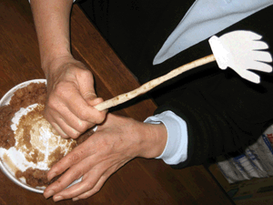ママチキンが牛蒡を摩り下ろしていたのですが、長い牛蒡がウネウネとしているのですよ。