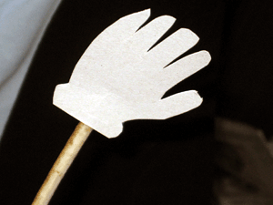 なので、ついこう遊び心を取り入れたくなって…というか向かいに座っていた自分に手を振ってはくれないかと思って…紙で手をつけてみました。