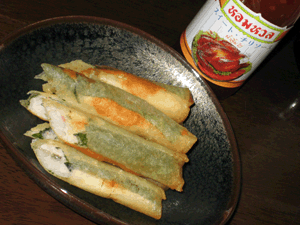 長芋・海老・紫蘇のおつまみ的なカンジの春巻きです。